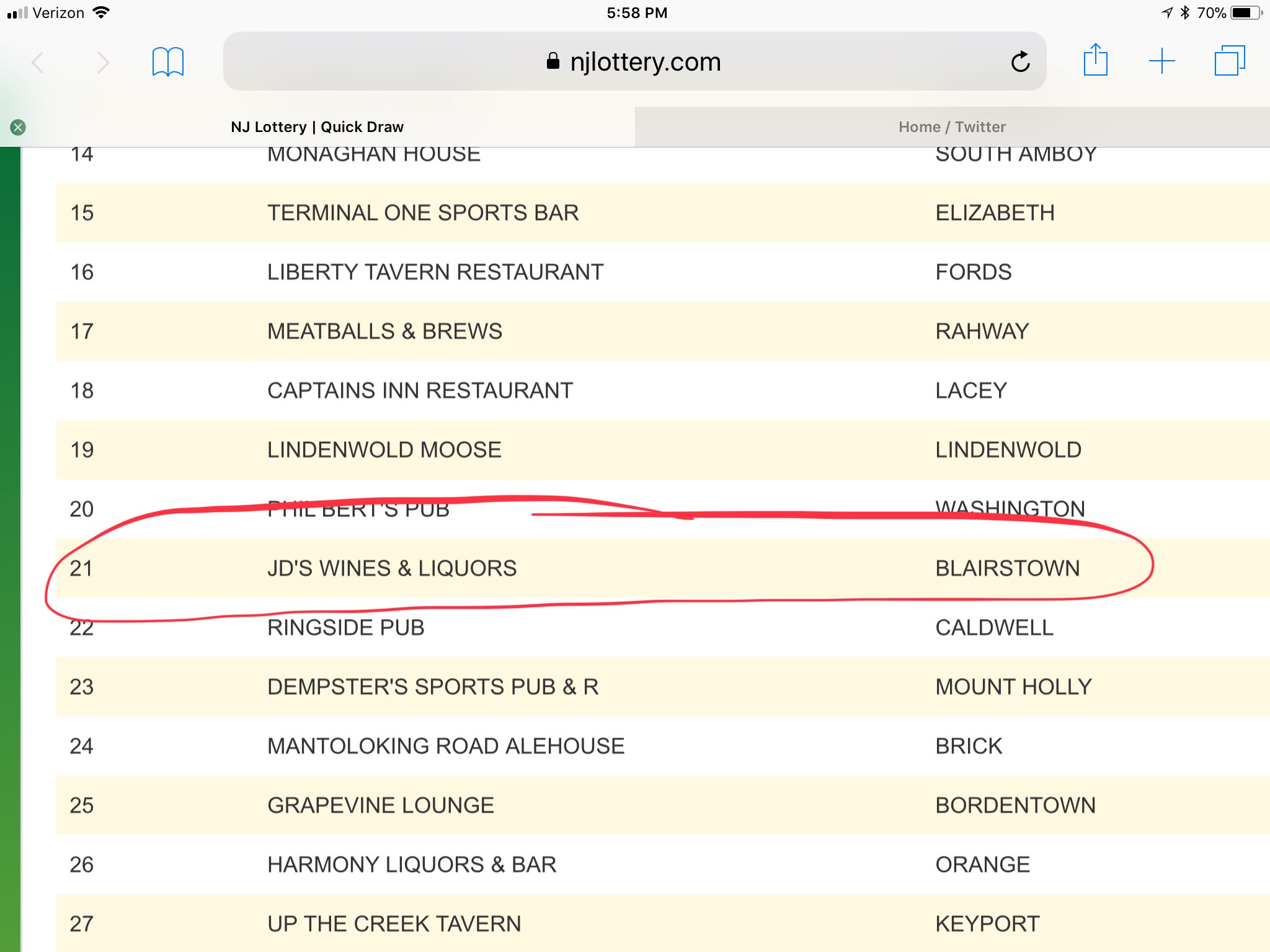 New Jersey Lottery Retailer for the entire Promotion Period including up to the point of a prize. 2323 Spruce Street Ewing. Partner Play - Bartenders and waitstaff get a chance at a Quick Draw free play for a chance to win up to 100000.